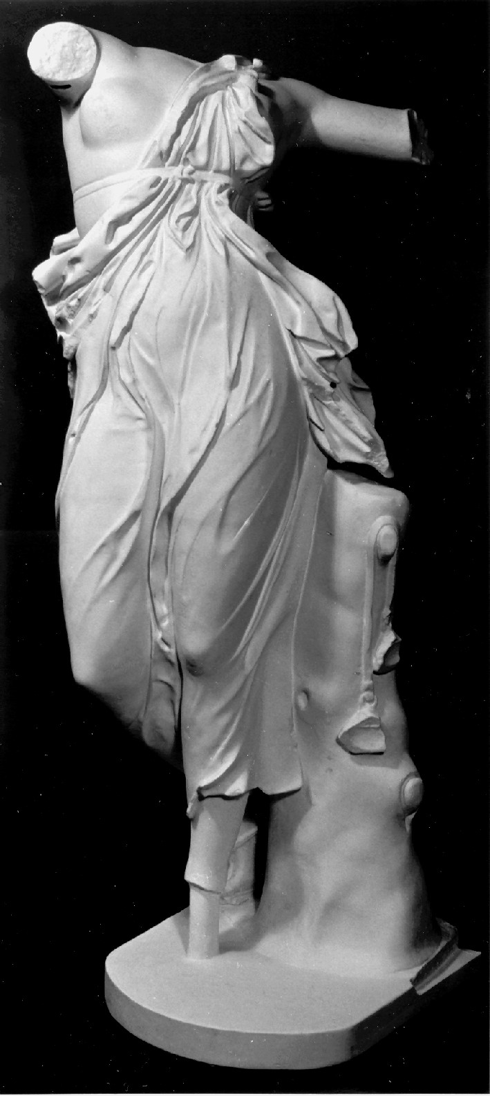 Wie wird man sich dieses Original nun zu ergänzen haben? Am linken Schlüsselbein findet sich der Ansatz einer Stütze, die zu keinem der Arme geführt haben kann, sondern nur zu einem Gegenstand, den sie in einer der Hände hielt.