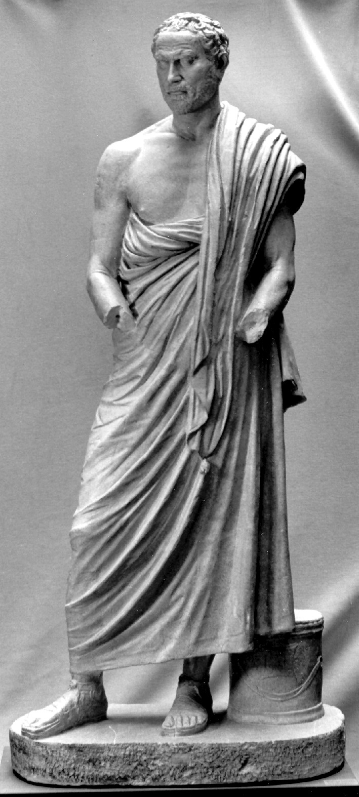 Eine 13 cm hohe Bronzebüste aus der sog. Pisonenvilla in Herculaneum, die auf der Brust den Namen Demosthenes trägt, ermöglichte eine Identifizierung der literarisch überlieferten Porträtstatue mit dem Statuentypus, der durch Repliken in Rom (Abguß Th.31), Kopenhagen (Abguß Th.32), Brüssel (Abguß Th.24) und weit über 50 Kopfrepliken bekannt ist.