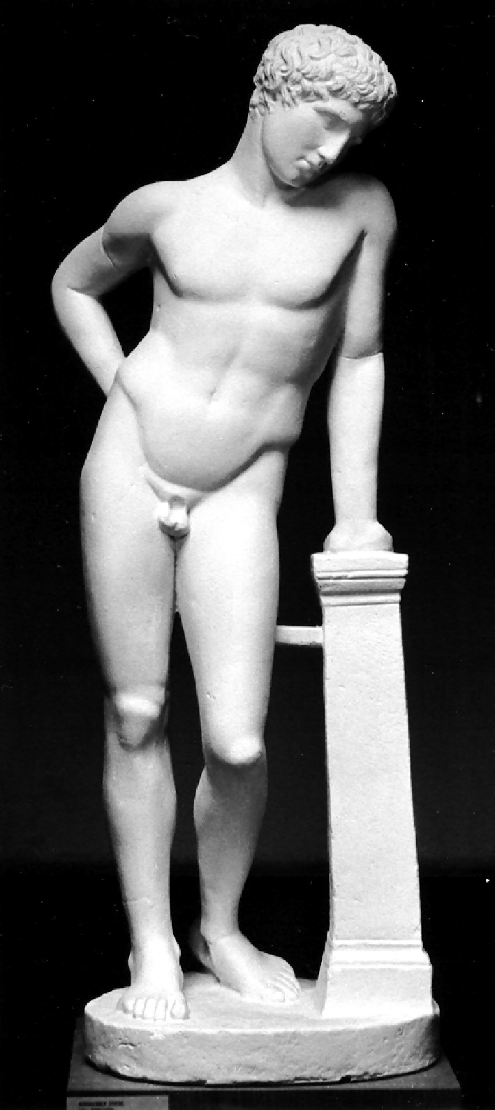 Im antiken Griechenland war die sportliche Betätigung in der Palaestra Hauptbestandteil der richtigen Erziehung, der paideía, denn die körperliche und die geistige Ausbildung gehörten nach damaligem Verständnis untrennbar zusammen. In der klassischen Kunst wurde daher der wohlerzogene Jüngling meist als vorbildlich trainierter Athlet dargestellt. Der zu Boden gesenkte Blick dieser Athletenstatuen entsprach den gesellschaftlichen Anstandsregeln, die von der Jugend eine zurückhaltende Schamhaftigkeit (gr. aidos) in der Öffentlichkeit verlangten. Unsere Figur ist damit am klassischen Athletenideal orientiert, wandelt es aber gleichzeitig in charakteristischer Weise ab. Denn die Reize des Knaben, die durch das Herausdrücken der Hüfte unverhüllt vorgeführt werden, unterstreicht der Künstler noch, indem er die Ermattung des Körpers durch das schwere Aufstützen auf den Pfeiler prononciert zum Ausdruck bringt. Eine derartige Betonung der Erschöpfung wäre bei klassischen Statuen ausgewachsener Athleten kaum möglich gewesen.