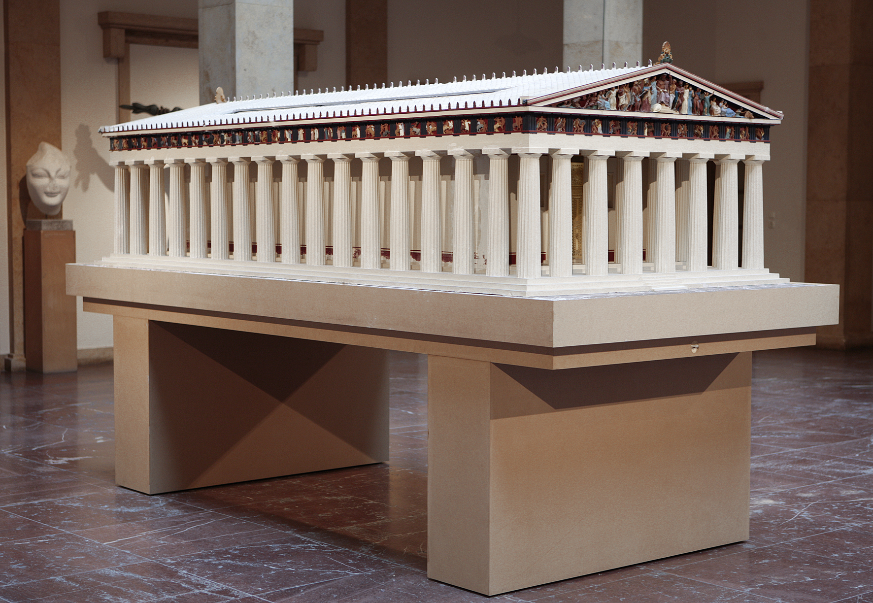 Weitere Anforderungen waren die Rekonstruktion des Bauwerks und seiner Bauskulptur, die Farbfassung von Architektur, Bauskulptur und des Kultbildes sowie die hypothetische Rekonstruktion der Außen- und Innenausstattung im Zustand des 5. Jhdts. v. Chr.